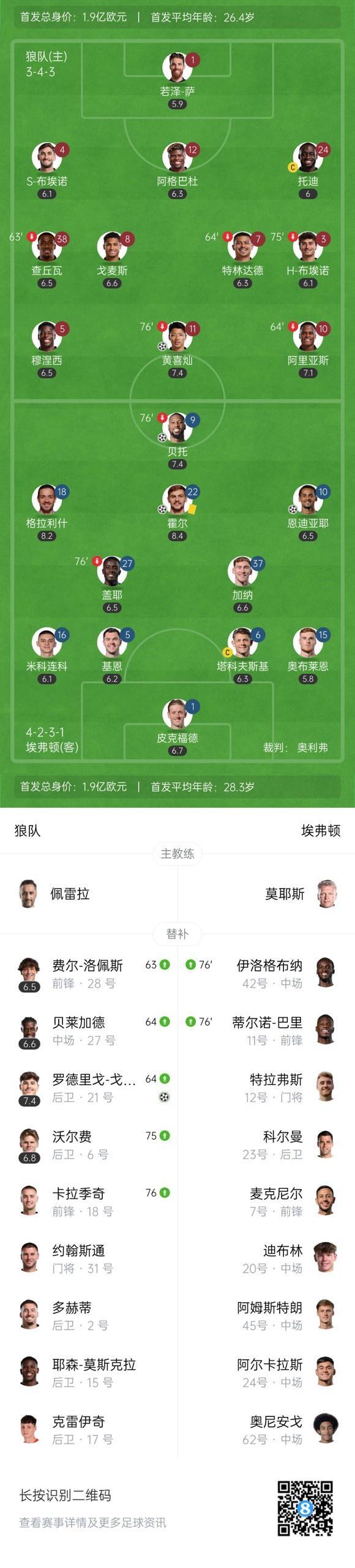 第78分钟,狼队再扳一城!沃尔费左路下底横传禁区门前戈麦斯抢点抽射破门,狼队2-3埃弗顿。↓